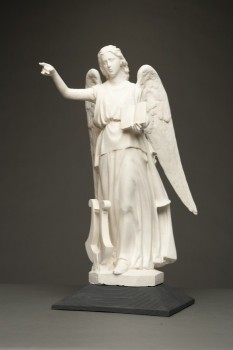 Existing photos of the Gottschalk monument show a white (most likely Carrara) marble angel approximately 4’10” in height atop a marble pedestal. Called “The Angel of Music,” it stood as an allegory to Gottschalk’s successful career as a composer and pianist. The angel’s left hand held a tablet bearing the titles of six of Gottschalk’s most famous compositions; a heraldic trumpet was tucked beneath the arm. Her right hand was extended in a gesture suggestive of leading an orchestra. At her feet was a classical lyre.