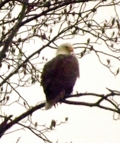 A couple notes about bald eagles. White head and tail marks a mature bird, 4-5 years old at least. During icy winters, bald eagles move south towards open fresh water: Croton Point Park in Westchester is a great place to see them in January and February.