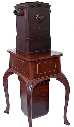 We do have a Beckers Viewers in our Historic Fund Collections. But I recently came across an auction item that is the best of the best–a great piece of 19th century furniture (of which we have none in our collections) and the personal Beckers Viewer owned by Alexander Beckers himself (and, according to the auction description, consigned by Beckers’s 85-year-old granddaughter).