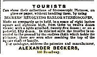 Beckers was a daguerreotype photographer–we have several of his portraits in our collections. But he was also the inventor of the Beckers Viewer, which used several patents that he obtained. It was the home entertainment center of its time. It allowed people, two at a time–one seated on one side of it, the other on the opposite side–to tour the world in 3D, viewing stereoscopic views through lenses and using a rotating mechanism to look at many views. Before there was an Internet, or television, you might discover the Pyramids or Paris or New York City with a Beckers Viewer.
