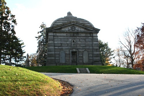 Heinrich Steinweg (1797-1871) trained as a pianomaker in Germany. He immigrated to New York City in 1851, Anglicized his name to Henry Steinway, and, with his four sons, who had come with him, made Steinway Pianos America’s leading piano manufacturer. He had the largest tomb at Green-Wood built for his family: room for 128 interments on the main floor and 128 in the basement.