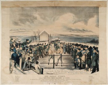 January 1, 1819: Tom Hyer, a New York-born bare-knuckled boxer was recognized as the first American Champion after a 101-round victory over Country McCloskey at Caldwell’s Landing New York on September 9, 1841. After taking an almost decade-long hiatus, Hyer next defeated Yankee Sullivan in little more than 17 minutes at Still Pond Creek, Maryland on February 7, 1849. The widely publicized fight won Hyer a $10,000 purse and helped to ignite the sport’s popularity. Here’s a print of that brawl. According to the International Boxing Hall of fame, Hyer was so dominant over his foes, he had immense trouble securing opponents willing to meet him in the ring. Hyer retired in 1851 and died on June 26, 1864.