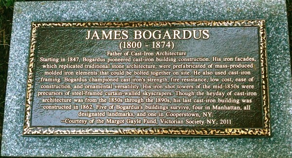 However, not until weeks ago were their respective accomplishments detailed at their gravesites. With funding from the Margot Gayle Fund of the Victorian Society of New York (thanks!), Bogardus and Badger now have handsome bronze plaques, mounted on granite bases, that describe their great contributions.