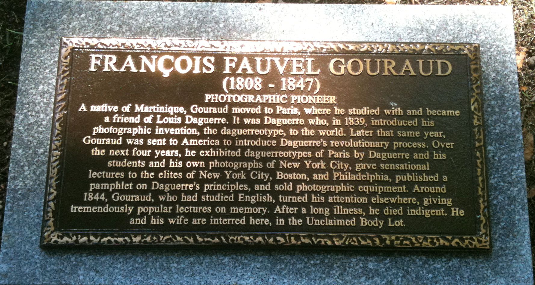 And Gouraud’s grave, with funding provided by an anonymous historian, is now marked with bronze and granite.