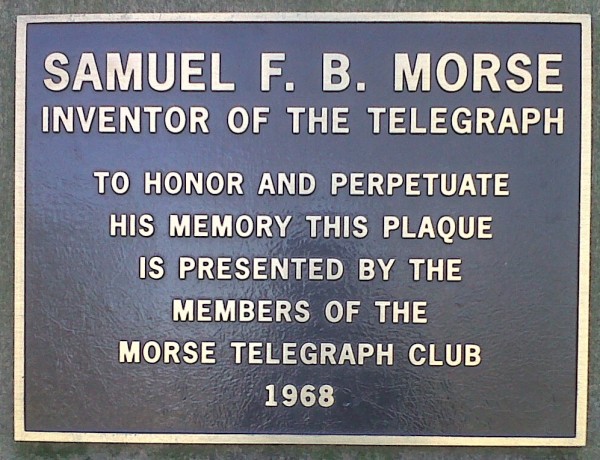 Almost a century after his death, in 1968, a bronze plaque, honoring his telegraphic accomplishments, was placed on the Morse Monument. Years later, it was stolen, and a second cast was made and mounted.
