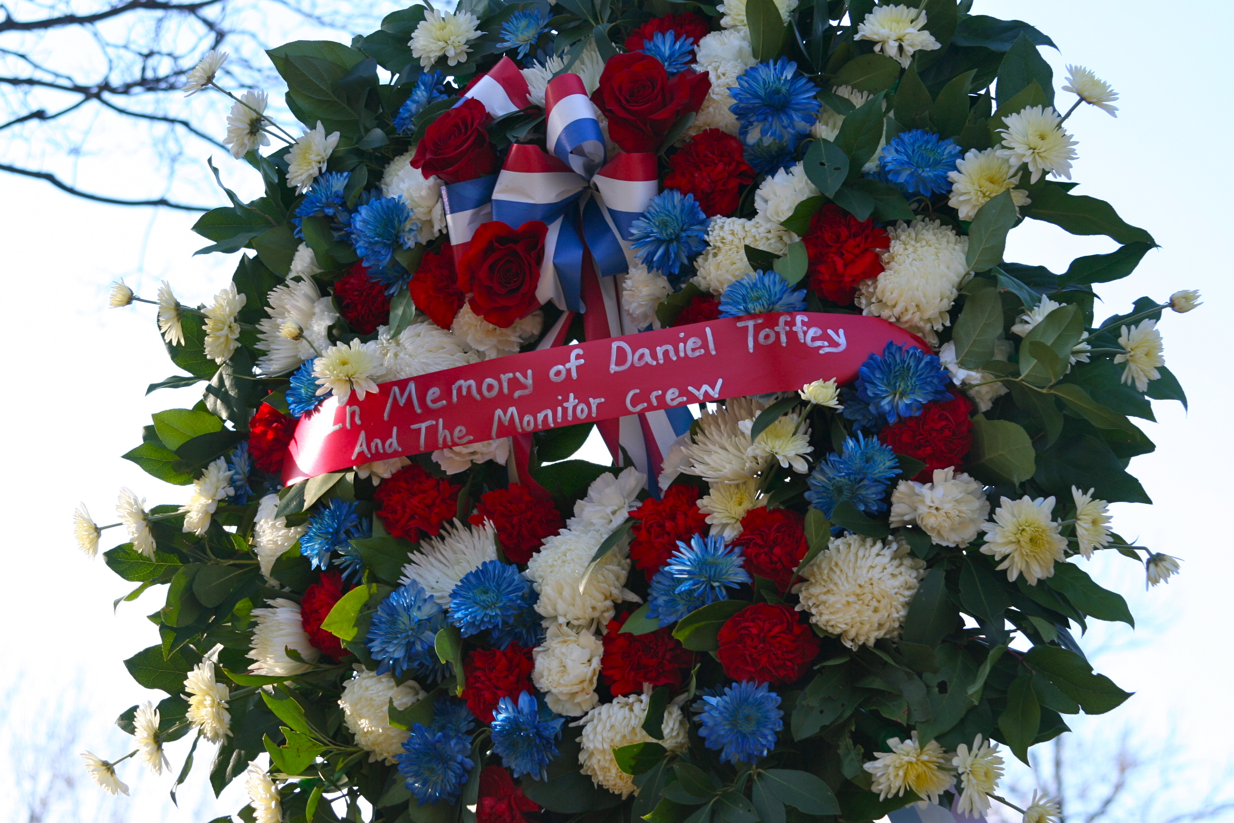 We stopped in Green-Wood at the lot of John Roach (1815-1887), who came to America as a penniless Irish immigrant and who benefited from the Monitor’s legacy by becoming the king of the iron-hulled ship industry in America. We then went to the graves of several men who served on the Monitor: Captain’s Clerk Daniel Toffey (1837-1893),