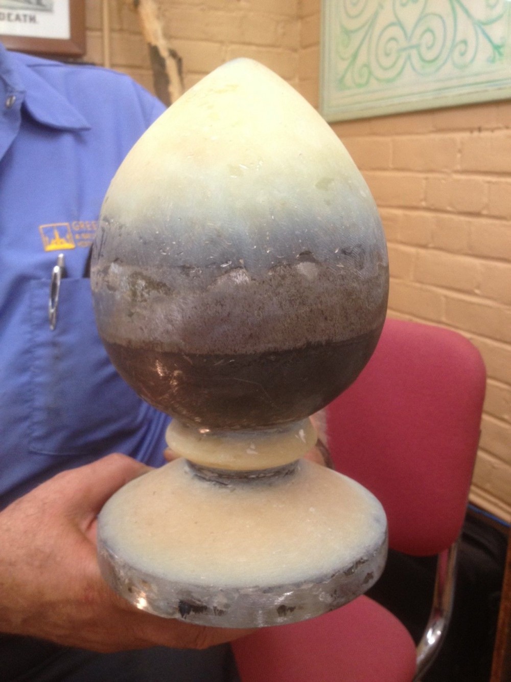 One of the replacement finials, before painting. Photograph by Art Presson.