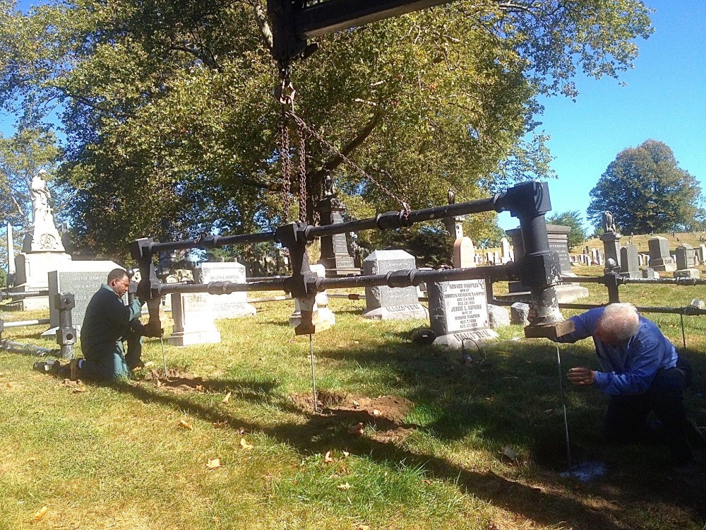 Great work by both of these in-house restoration teams–work that few, if any, historic cemeteries have the skilled staff capable of doing. We are all very proud of them!