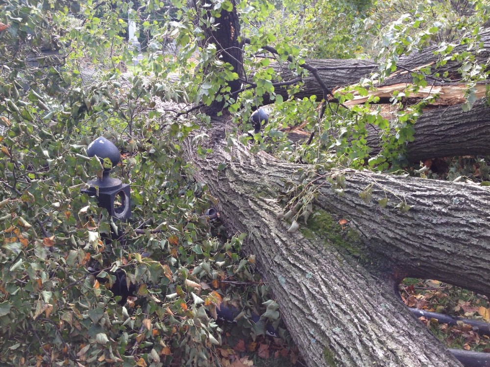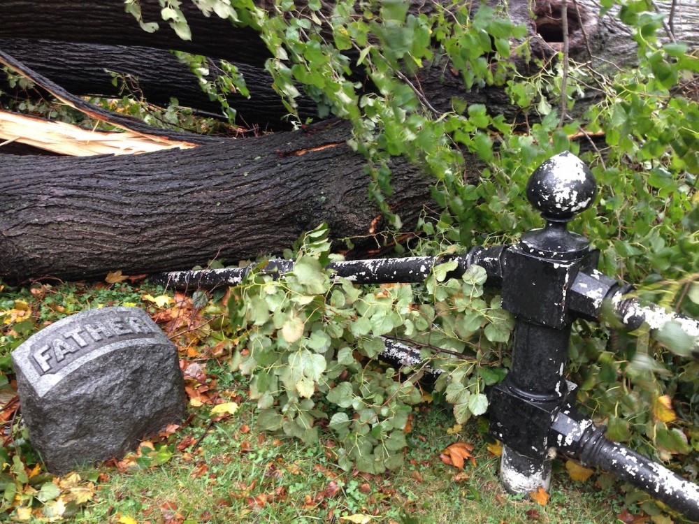 300 trees were lost. And those trees took a toll as they crashed to the ground, landing on, and shattering, monuments and fences.