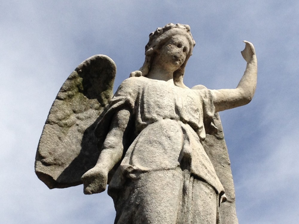 Fortunately, we were able to find the broken-off pieces of the Lloyd Angel on the ground, beneath the maple branches. Green-Wood’s Restoration Team, led by Frank Morelli, took over from there, and just recently completed the repairs. The angel is once again angelic!