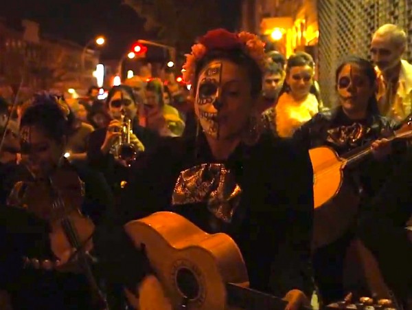 On the first Saturday evening in November, 200 people gathered near the cemetery, awaiting directions as to where they would be going. Soon a Mariachi band arrived and led them down the streets and through Green-Wood’s gates. A candlelight procession into Green-Wood, followed by performances on the grounds and dancing in the Historic Chapel, made it a very special night.