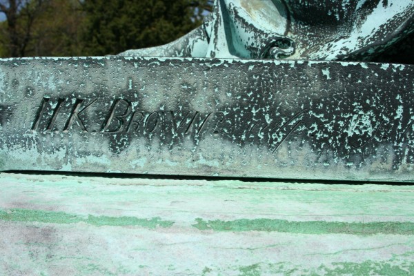 Brown has three sculptures at Green-Wood–two bronzes and a marble carving. Certainly the most important of those three–both from the standpoint of it being a game changer for Green-Wood in attracting visitors and sales, and because it is one of the first large bronzes cast in America–is the heroic bronze of De Witt Clinton:
