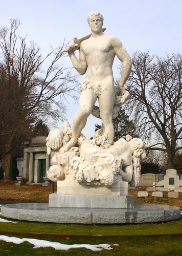 You will find an earlier blog post on Finn’s monument here. And, here is MacMonnies’s sculpture, “Civic Virtue,” which was brought to Green-Wood a year ago, and is now on permanent loan from New York City: