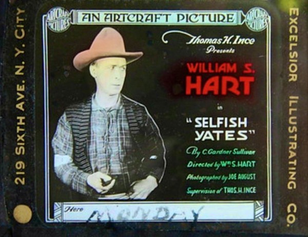 And here is William S. Hart, in a coming attraction slide for one of his silent movies. These slides were used in movie theaters to update the audience on what was about to play there.