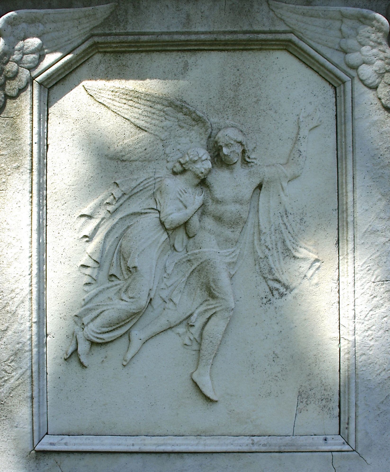 Both Charles Schieren and his wife died within hours of each other in March, 1915. He had been ill for two years; his wife, who had been trying to nurse him back to health, herself became ill and died the day after he did. The family chose an understandably somber subject, “The Angel of Death,” for the monument in their lot.