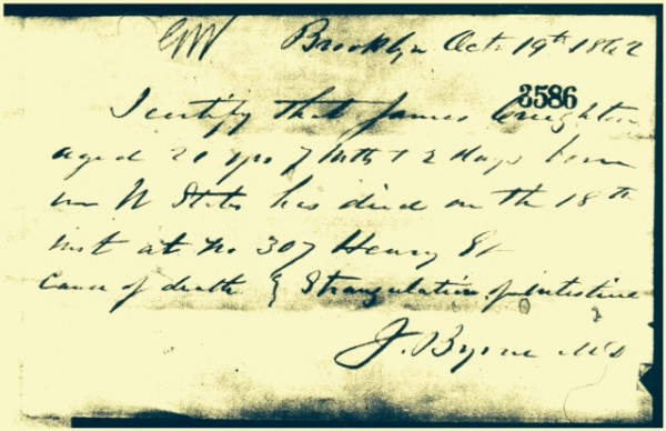Update: And this very late breaking news from John Thorn, 151 years after James Creighton’s death: Danny Conroy has just found James Creighton’s death certificate on Ancestry. It was filed under “James Crughton”–someone understandably mistook the ei for a u–this is quite the detective work by Danny to find it!