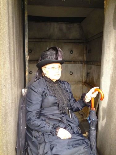 We started this event a few years ago, opening up mausoleums to the public, with volunteers in character and in costume greeting visitors. And it has caught on–and gotten bigger and better each year.