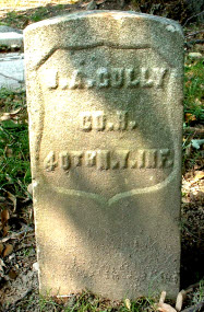CULLY (or CULLEY), JAMES A. (1847-1892). Drummer, 40th New York Infantry, Company H; wagoner, 74th New York Infantry, Companies H and I. Cully was born in England. After enlisting at Staten Island as a wagoner on August 26, 1861, he mustered into the 74th New York on September 14. At some point during his service, he was reduced to the rank of private, was transferred to Company I on March 1, 1862, and transferred into the 40th New York in the summer of 1864. He re-enlisted on July 27, 1864, as a private, at which time he began service in the 40th, also known as the Mozart Regiment or Constitution Guard. Cully was promoted to drummer on August 3, and mustered out on September 16, 1864, at Petersburg, Virginia. Cully also served in the First Battalion of U.S. Engineers, Company D, and the 6th United States Veterans.