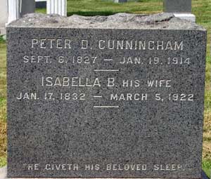 In civilian life, he was employed as a bookkeeper, clerk in a dry goods store, and shipping clerk. He might be the Peter D. Cunningham listed as a clerk in the Brooklyn Directories for 1873-1876 and 1890-1892; in the latter directory, he lived at 378A Fifth Avenue. His last residence was 28 South Bergen Place in Freeport, New York. He died of acute dilation of the heart and chronic myocarditis. Section 174, lot 21448, grave 1.