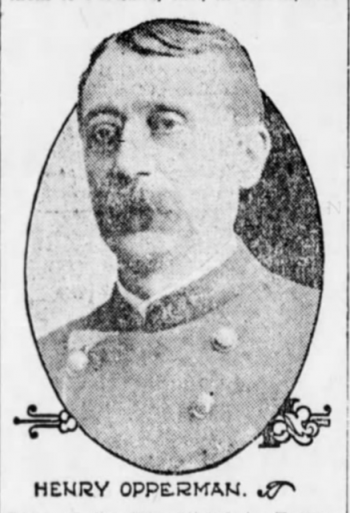 OPPERMAN, HENRY (1846-1925). Private, 30th New York Light Artillery; 31st New York Light Artillery. Opperman was born in Hildesheim in Hanover, Germany. As per an article about his 70th birthday in the Brooklyn Daily Eagle on October 1, 1916, he belonged to a volunteer group of 300 men during the troubles in Schleswig-Holstein, a conflict between Denmark and the German nationalists over the rule of those duchies. Opperman’s group disbanded after the Prussians arrived and he and the others fled to the United States and landed in Portland, Maine, in March 1864. Although some of the 300 refuges enlisted in Maine regiments during the Civil War, about 50, like Opperman, came to New York where they joined the Union cause. Opperman enlisted at Brooklyn on April 4, 1864, as a private, and mustered immediately into the 30th New York Light Artillery. He was transferred into the 31st Light Artillery on October 25, 1864, and mustered out on June 23, 1865, at New York City.. As per his obituary in the Daily Review [Long Island], which confirms his Civil War service, Opperman was purportedly a member of a posse in search of John Wilkes Booth after he assassinated President Abraham Lincoln on April 14, 1865; Booth was found and shot by a Union soldier 12 days later while hiding in a barn near Fredericksburg, Virginia (Booth’s companion gave himself up).