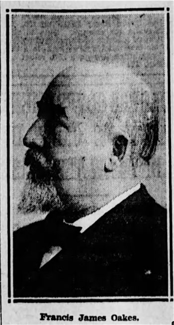 Oakes started his company, which bore his name, in the late 1880s, remaining as its president throughout his lifetime; the Oakes Manufacturing Company in Astoria, New York, made dyewood extracts that are used in the leather and textile industries, where Oakes was well known. Textile Colorist and Converter, in its obituary of Oakes, noted that he developed a specialized product, Crystalline Hematine Paste, which proved very lucrative for his business. The 1888 New York City Directory lists him in the dye business. A Freemason, he was also a member of Lafayette Post #140 of the G.A.R; at the time he mustered into the G.A.R. on June 1, 1888, he listed himself as a merchant who lived at 430 Ditmars Avenue in Long Island City. The 1890 Veterans Schedule confirms his Civil War service in the 1st Artillery. As per his passport application of 1892, he was 5′ 7″ tall with hazel-gray eyes, a high forehead, white hair, bearded chin, small mouth, fair complexion, and round face. The 1894 New York City Directory lists him in the chemicals business in Long Island City.