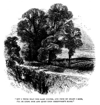 * * * * * * My amusements are not various. I can see from my window a railroad depot and a locomotive; but steam, although a giant, a reformer and an industrial power of vast etceteras, is not strictly cheerful. To-day is, I think, Spring-opening day of the season. The display is very tasteful and elegant. We noticed quite a chaste and novel thing in the way of sunshine, which will no doubt be extensively patronized. A very neat and delicate article of budding elm, trimmed with early blue-birds, attracted much attention, as did also a little chef d’oeuvre, consisting of a pot-pourri of hepaticas, crocuses and snow-drops. Jesting apart, the day is lovely. The sun shines on the distant hills. The singing of the birds comes through my window with a grateful sound as I lie sad, and silent, and suffering. Oh, liberty of motion, health and strength! I never knew what treasures you were till now.