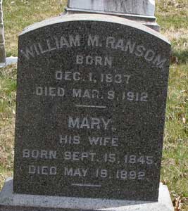 RANSOM, WILLIAM (1830-1875). Second lieutenant, 82nd New York Infantry, Company E. Ransom, who was born in New York State, enlisted at New York City as a second lieutenant on April 7, 1861, was commissioned into the 82nd New York on May 21, and was discharged on July 30, 1861, at New York City. His last residence was 67 East 15th Street in Manhattan. Section 158, lot 15146.