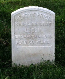 PRICE, HENRY FREDERICK (1837-1895). United States Navy; unknown soldier history. Born in England, Price immigrated to New York in 1851. According to a descendant, he served in the Navy aboard the Carondolet and was wounded in action. After he recovered, he joined the Union Army, was captured and held as a prisoner in Andersonville, Georgia. Other details of his military record are not known. He last resided at 217 47th Street in Brooklyn. Section 15, lot 17263, grave 580.