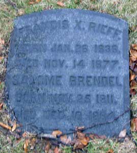 Remington moved to New York in 1872 where he was a partner in law firms that bore his name. The president of the United States Law Association as of 1881, he was responsible for law digests that specialized in business and commercial law. In addition, he was one of the first members of the New York Bar Association, belonged to the Montauk, Riding and Driving Club, and the Brooklyn Institute of the Arts. He also was renowned as a book collector and writer who contributed to many magazines and journals. He last lived at 838 Carroll Street in Brooklyn. An article about his death, a suicide by pistol shot to the head, appeared in The New York Times on February 10, 1899. Apparently, he was ill with the “grippe,” but suffered from bouts of depression. The article also noted that he lived in a “handsome brownstone in a fashionable neighborhood,” and left considerable property. Section 139, lot 26526.