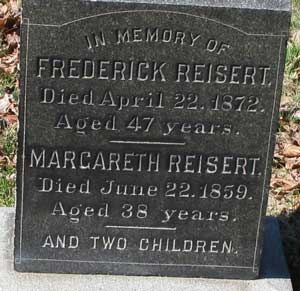REISERT, FREDERICK (1826-1872). Rank unknown, 10th United States Infantry, Company C. Originally from Germany, Reisert served in the 10th United States Infantry but the dates of his enlistment and discharge are unknown. He last lived in Fosters Meadow (now Valley Stream), Long Island. He died of consumption. Section 116, lot 4073, grave 84.