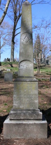 Driving around Green-Wood a few years ago, I noticed a small obelisk along Central Avenue that seemed to have some sort of ship carved into it. It took me a while to get back to that monument to take a closer look, and here’s what I saw: