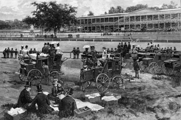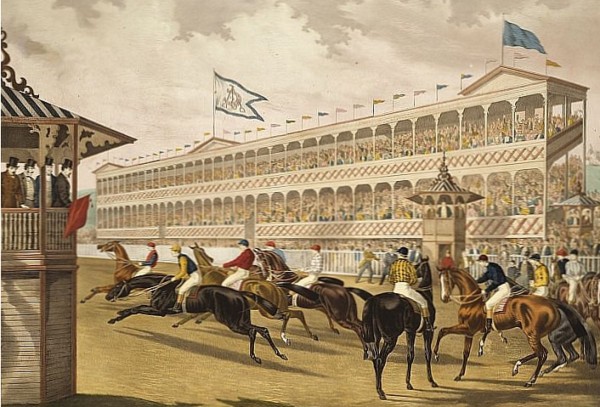 At Jerome Park there were not less than 10,000 people, of whom full one-third were ladies, elegantly dressed, out for a holiday rather than business, and far less intent on the races than on meeting friends and having a free and easy social chat. Not one in ten probably knew or cared a straw about the horses, and their running was merely a pleasant incident in the day’s enjoyment. . . . The racing . . . collected the crowd and served as an excuse for going; but even if it were omitted altogether, few would have felt that the day was lost.