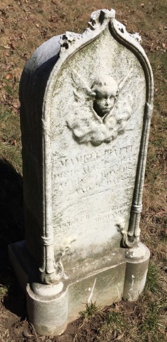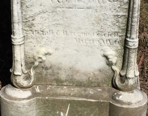 Born near Milan, Italy, Patrizio Piatti (1827-1888) was from a family of generation after generation of marble sculptors. According to his obituary in The New York Times, he was “a warm friend” of the Italian patriot Garibaldi. Piatti came to New York about 1850, after having taken part in the Revolution of 1848, and established himself as a sculptor in marble of cemetery monuments and fireplace mantles. In the 1877 New York City Directory, he is listed as a sculptor at 259 West 14th Street. The 1880 census lists him as a sculptor living with his wife Antonia and their three children, Emilio, Virgilio, and Virgil. Antonia was born in Italy; their three children were born in New York. Though I have been unable to find a portrait of him, we do have a detailed description of what he looked like: according to his 1871 passport application, Piatti was 5’7” with a high forehead, dark eyes, medium nose, medium mouth, grey hair, robust complexion and oval face. He was a founder of La Societa Italiana di Frateilanza, the first Italian society in the United States. Piatti also sculpted the marble interior of very ostentatious A.T. Stewart’s Mansion at 34th Street and Fifth Avenue in Manhattan. On July 21, 1888, he was found dead in his bed, having accidentally suffocated from a gas leak.
