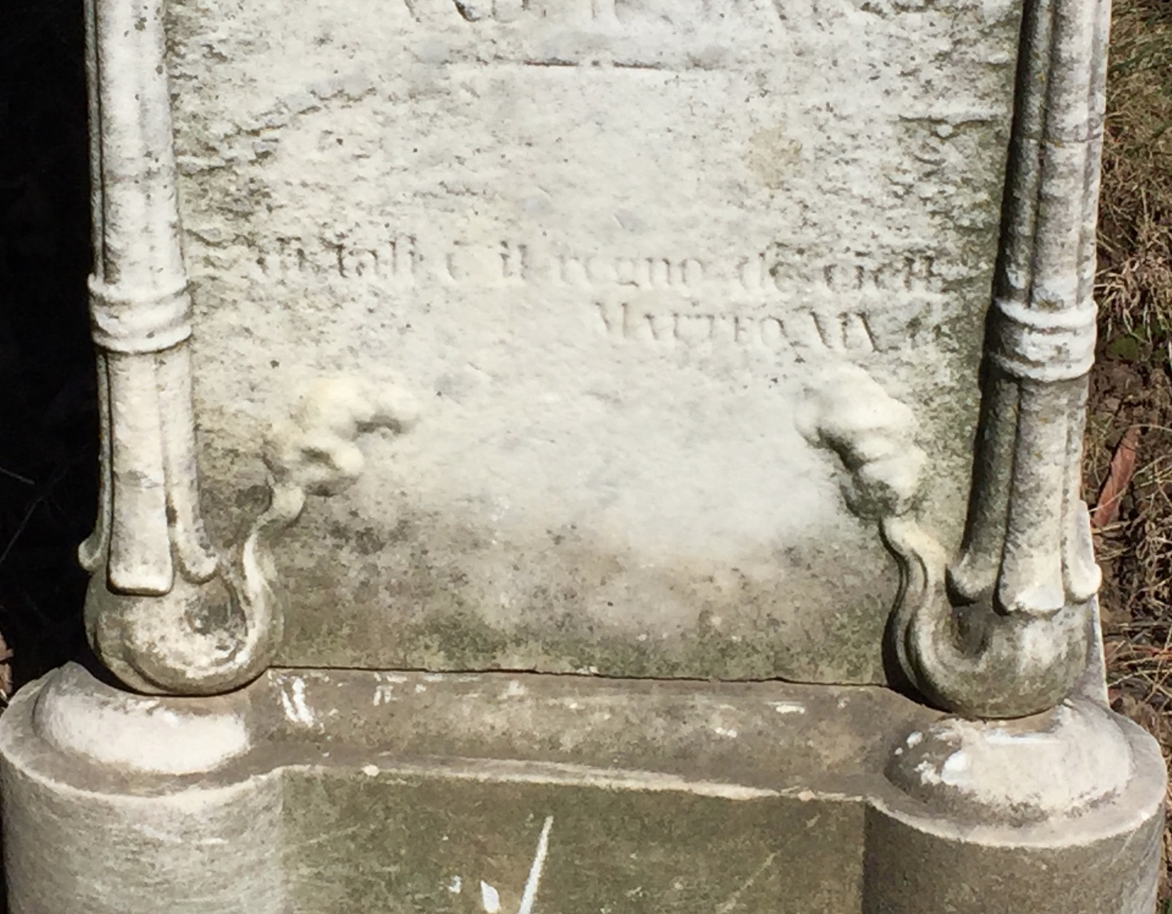 Way back when, in about 1997, I was researching and writing the book, Brooklyn’s Green-Wood Cemetery: New York’s Buried Treasure. As I worked on the book, and visited the Griffith Monument, I was able to detect what appeared to be a sculptor’s signature on it. But there was one big problem—no matter how long I stared at that signature, I could not make it out.