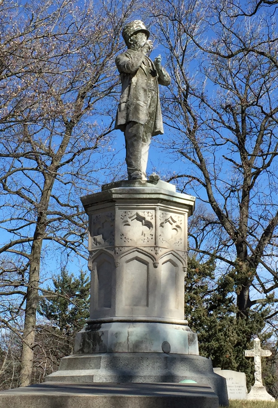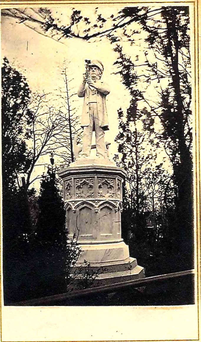 Vosburgh was interred at Green-Wood in section 123, lot 13808, near Brooklyn’s highest point, with spectacular views of Battle Hill and New York Harbor. Several years later, his comrades collected $5,000 and hired Patrizio Piatti to sculpt a marble monument to him at Green-Wood. The New York Times of May 24, 1866, reported on the ceremony to unveil the memorial: