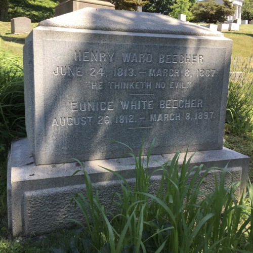 The seller listed it without identifying the subject of this bust. But, to me, though the photographs in the auction listing were difficult to make out, it looked to be Henry Ward Beecher, who is interred at Green-Wood. Beecher’s fame has diminished severely since his death. During his lifetime, he was, as per the title of Debby Applegate’s recent biography of him, “The Most Famous Man in America.” That is pretty famous, particularly considering that one of his contemporaries was President Abraham Lincoln, a pretty famous man himself. Beecher, reverend of Plymouth Church in Brooklyn Heights, was famous as a leading voice of abolition (he held slave auctions there to purchase the freedom of slaves and to dramatize slavery), as a moral leader (2,000 people attended services every Sunday to hear him preach), as a supporter of the fight for free soil (rifles sent to Free Soilers, who battled against slave interests in “Bleeding Kansas,” were known as “Beecher Bibles” in his honor–they were shipped in crates stamped “Bibles.” Lincoln personally asked Beecher to deliver the invocation at Fort Sumter on April 14, 1865, when the American flag was again raised over the United States fort against which the first shots of the Civil War were fired; Lincoln would be assassinated that night. And, Beecher was also the subject of the great scandal of the 19th century–sued by Theodore Tilton, whom he had mentored, for “alienation of affection” for the affair Beecher seems to have had with Elizabeth Tilton, Theodore’s wife. But, since Beecher’s death, he has become known largely as Harriet Beecher Stowe’s brother–she was famous in their lifetimes as the author of “Uncle Tom’s Cabin,” but was, in their time, in no way as famous as he was. Times have changed.