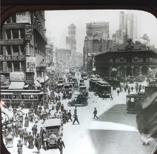 I enjoy collecting. And, as a person fascinated by our history, one of the things I like to collect is photographs of 19th century New York City. Such photographs help us understand a world both different from ours, but one that has profoundly affected our own world. They give us perspective on the human condition–what has changed, what remains the same, over time. These old photographs come in several formats: stereoviews, cabinet cards, cartes de visite, and magic lantern slides. I recently donated my collection of about 1000 magic lantern slides–mostly photographic images of late 19th and early 20th century New York City–to the Green-Wood Historic Fund. Green-Wood is very much a place of New York City in this era–the heyday of the magic lantern slide was from about 1890 to about 1920–and it was a perfect place for this collection, which will help us understand the time and the people who are interred there. These photographs, made so that they could be projected for slideshows, whether in public for an admission fee or in one’s own parlor, for an evening of entertainment, long before the existence of radio or television or the Internet or video games or Facebook or Twitter, offer us a very special window into that time.