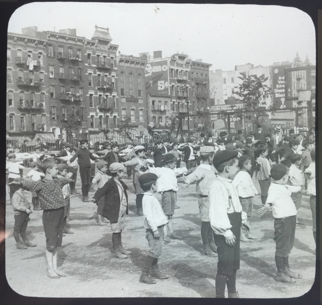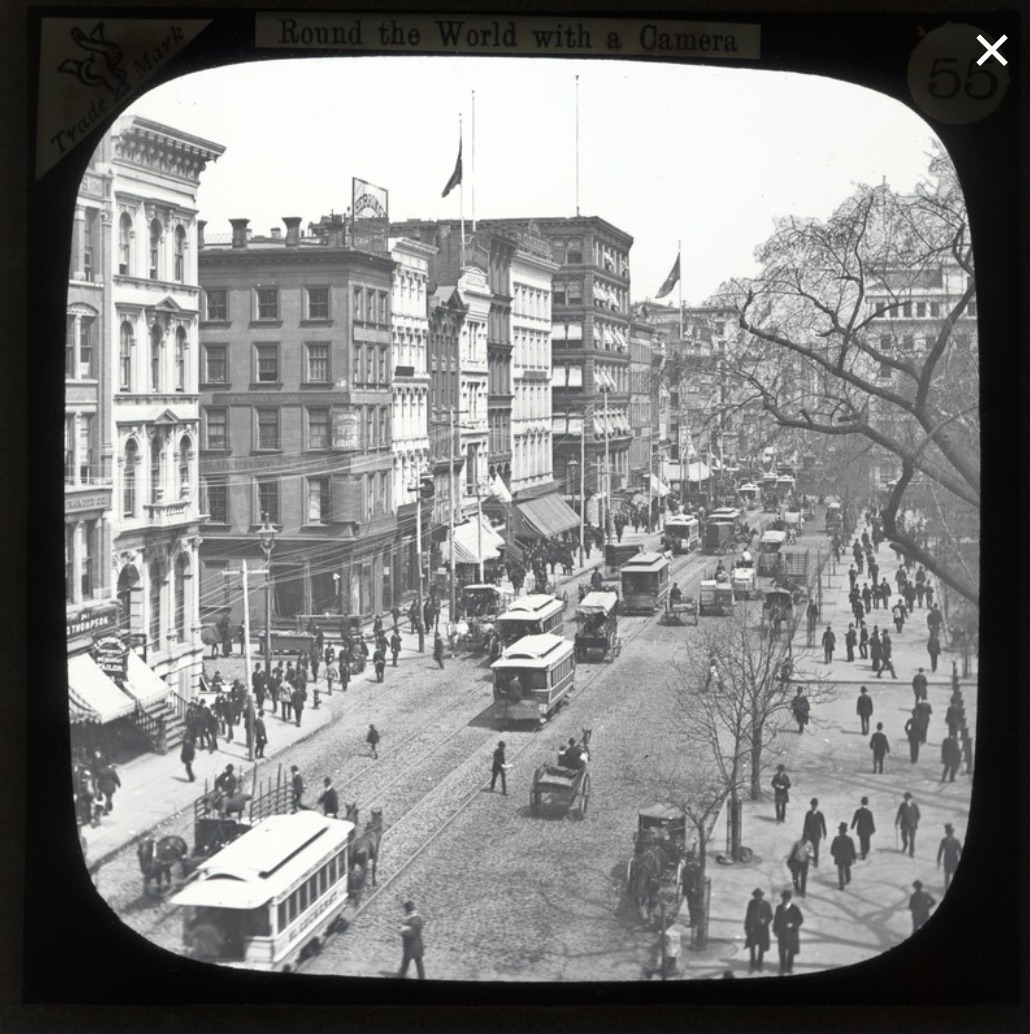 I enjoy collecting. And, as a person fascinated by our history, one of the things I like to collect is photographs of 19th century New York City. Such photographs help us understand a world both different from ours, but one that has profoundly affected our own world. They give us perspective on the human condition–what has changed, what remains the same, over time. These old photographs come in several formats: stereoviews, cabinet cards, cartes de visite, and magic lantern slides. I recently donated my collection of about 1000 magic lantern slides–mostly photographic images of late 19th and early 20th century New York City–to the Green-Wood Historic Fund. Green-Wood is very much a place of New York City in this era–the heyday of the magic lantern slide was from about 1890 to about 1920–and it was a perfect place for this collection, which will help us understand the time and the people who are interred there. These photographs, made so that they could be projected for slideshows, whether in public for an admission fee or in one’s own parlor, for an evening of entertainment, long before the existence of radio or television or the Internet or video games or Facebook or Twitter, offer us a very special window into that time.