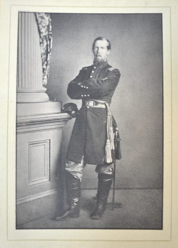 Major Clifton Kennedy Prentiss, in a carte de visite photograph. It was taken by a New York City photographer–see the top of “New York” at right bottom. The Green-Wood Historic Fund Collections.