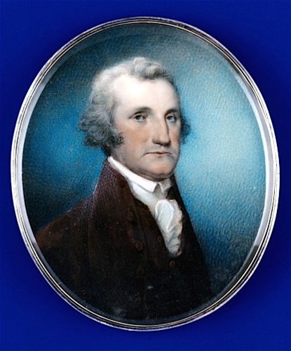 In 1791, Archibald, at the invitation of several wealthy New Yorkers, immigrated from Scotland to New York City. The next year, his brother Alexander joined him, and they together ran the Columbian Academy of Painting there, what may have been New York’s first art school and was certainly one of America’s first art schools. Well-known for his miniature portraits, Archibald Robertson went to Mount Vernon in Virginia late in 1791 to paint portraits of George and Martha Washington. He stayed at Mount Vernon for three weeks, painting miniature portraits from life of George and Martha Washington as well as two oil paintings of the general; Archibald and George became friends.