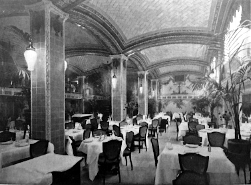 The two-story Della Robba Room of the Vanderbilt Hotel, as it appeared in 1914. It was decorated by Giovanni Battista Smeraldi, a leading designer, and had vaulted ceilings of Guastavino tiles, installed in a herringbone pattern.