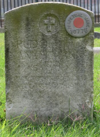 As per his New York State Military Abstract for World War I, which gives a birth year of 1886, Fox was drafted into federal service from the National Guard on August 5, 1917, and assigned as captain in the 105th Field Artillery stationed at Brooklyn, Fort Niagara and Camp Wadsworth, South Carolina. On June 30, 1918, he departed Newport News, Virginia, on the USS Madawaska bound for France; he listed his address as 349 7th Street in Brooklyn and his wife, Bertha Fox, as his next of kin. Fox arrived in France in June 1918, and participated in the action near the Somme at Saint Quentin Canal Tunnel. On March 4, 1919, he departed from Brest, France, on the USS America, arriving at Hoboken, New Jersey, on March 13. He was honorably discharged on April 3, 1919. On October 12, 1936, Bertha Kune Fox, of 674 85th Street in Brooklyn, his widow, applied for a government-issued headstone with Christian emblem, citing her husband’s service in the World War. He last lived in Hempstead, Long Island. Section 155, lot 32492.